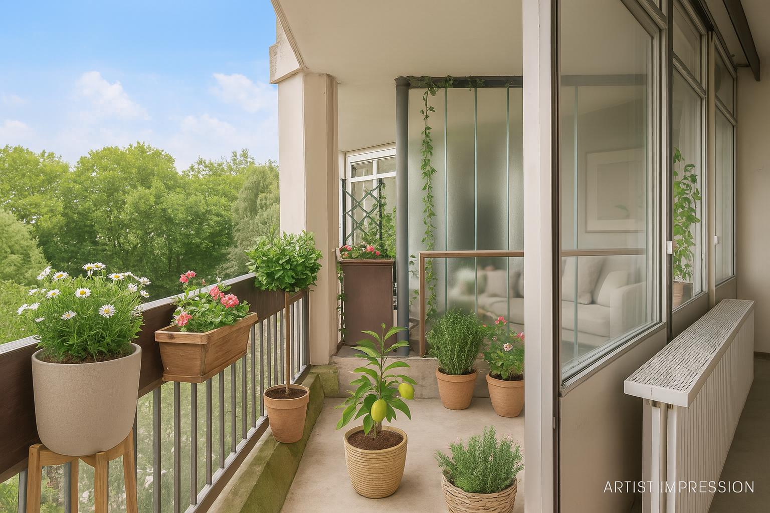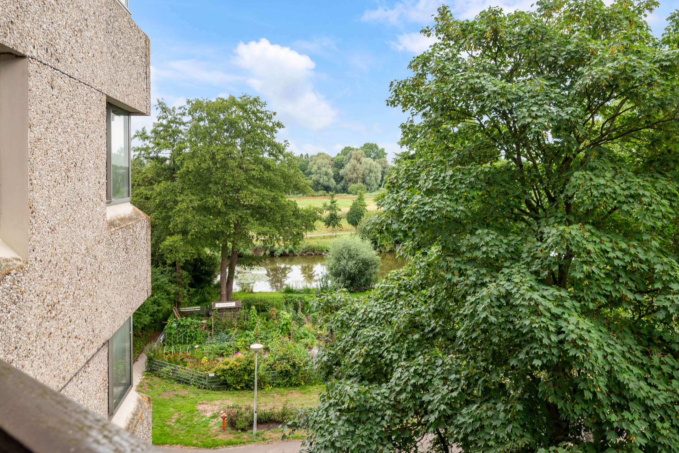 Middels lift of trappenhuis naar de vierde verdieping: entree met toegang tot meterkast, eenvoudige badkamer, lichte woonkamer met toegang tot eenvoudige keuken en balkon met groen uitzicht over de park achtige omgeving, vanuit de keuken is er nog een berging bereikbaar. Royale slaapkamer met vaste kasten.