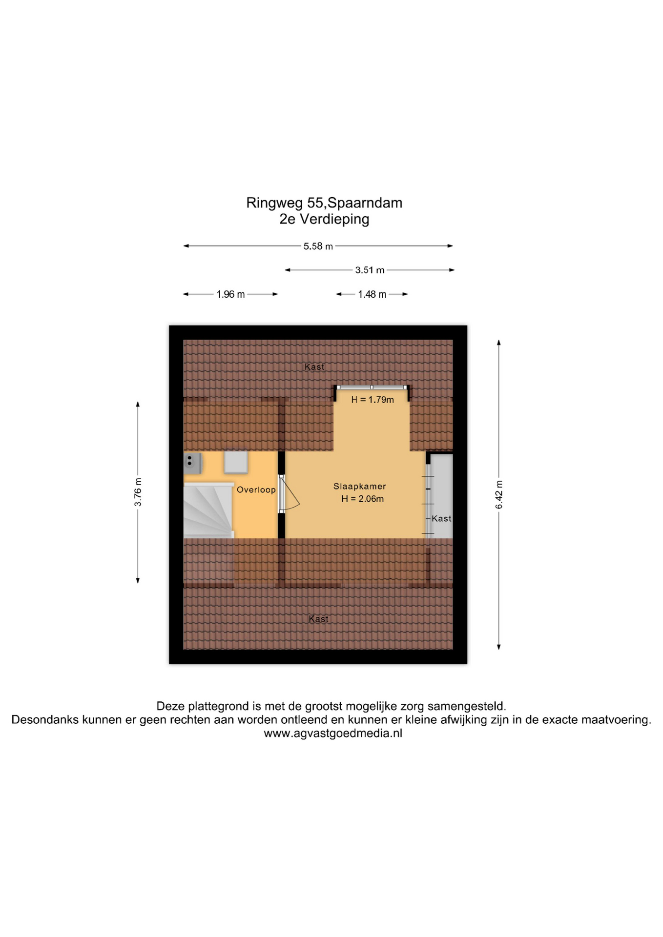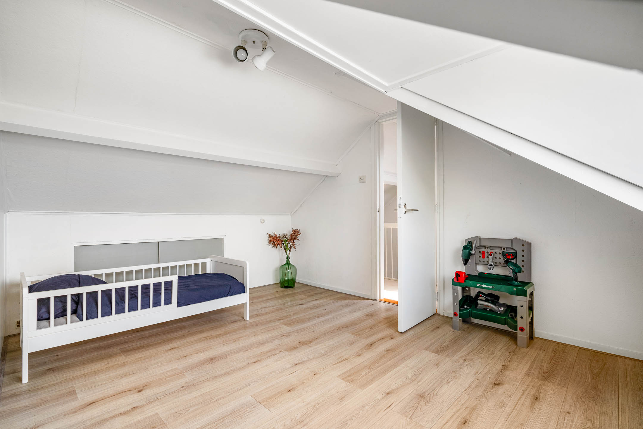 Tweede verdieping: overloop met bergruimte onder de knieschotten, opstelling c.v.-ketel, volwaardige derde slaapkamer met dakkapel aan de achterzijde met vaste kast.